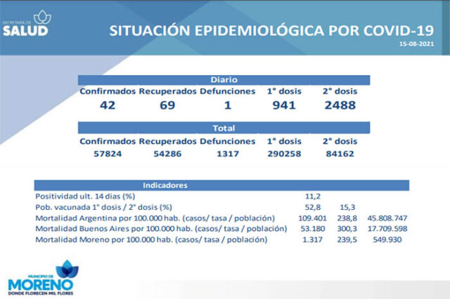 En el municipio de Moreno ya se aplicaron 374.420 vacunas contra el COVID-19, de las cuales 290.258 corresponden a la primera dosis y 84162 a la segunda.
