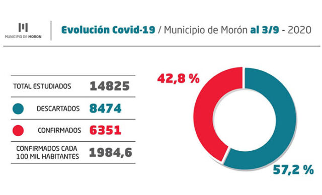 El total de confirmados entre la población del distrito asciende a 6.351 personas, los fallecidos son 145 y los recuperados, 4.325. Los casos activos a la fecha alcanzan las 1.881 moronenses.