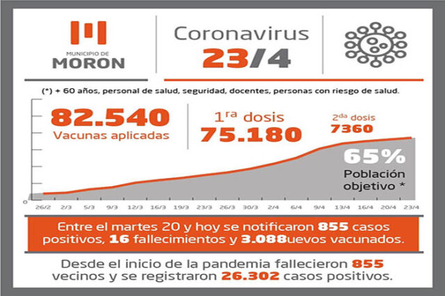 Se trata de 409 mujeres y 446 hombres que llevan la cantidad de casos confirmados a 26.302; mientras que las altas médicas sumaron 22.275 desde el inicio de la pandemia. En los últimos tres días se registraron además 16 fallecimientos (8 mujeres y 8 hombres), totalizando 855 moronenses que murieron como consecuencia del Covid 19, desde el primer contagio registrado en la comuna el 25 de marzo de 2020.