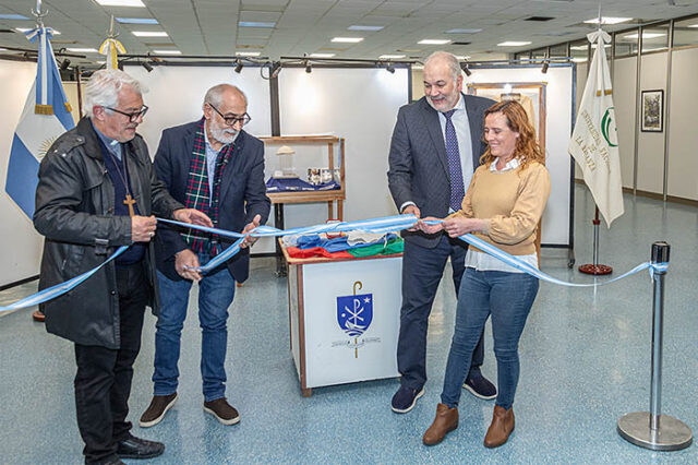 El Obispo de San Justo, Eduardo Horario García, visitó la UNLaM para sumar la medalla a esta muestra donde se exponen objetos y documentación del Papa Francisco.