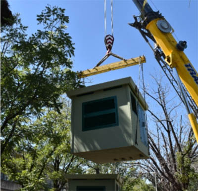 El pasado lunes 25 de marzo, en complemento con la ejecución de la obra civil correspondiente al proyecto de Plan Estratégico de media tensión, la UNM recibió 1 estación de maniobra y 2 centros de transformación de energía eléctrica que se distribuyeron dentro del predio del Campus de la Universidad.