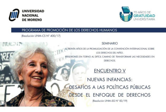 La Universidad Nacional de Moreno (UNM), realizará el viernes 15 de noviembre, un seminario «A treinta años de la promulgación de la convención internacional sobre los derechos del niño. Reflexiones en torno al difícil camino de transformar necesidades en derechos».