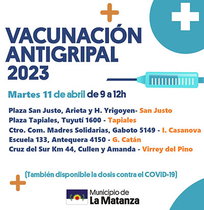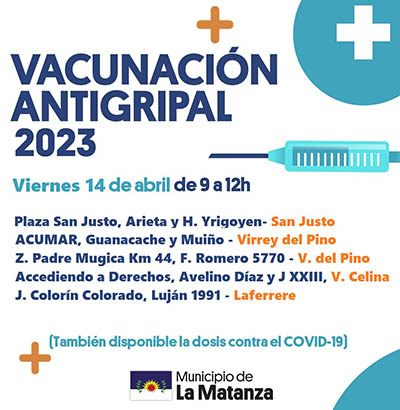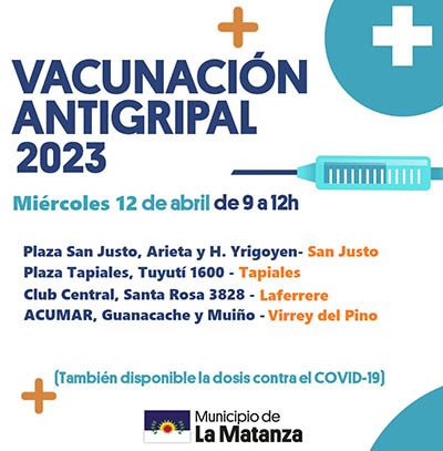 El Municipio de La Matanza continúa la campaña de vacunación antigripal y de calendario totalmente gratuita del 11 al 14 de abril.