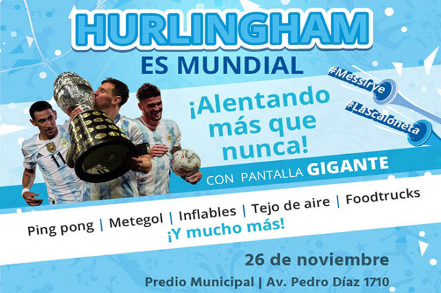 Este sábado 26 el Municipio de Hurlingham transmitirá el partido entre Argentina y México, a través del “Punto de Aliento” de la TV Pública en pantalla gigante, en el predio del Edificio Municipal ubicado en Avenida Pedro Díaz 1710.